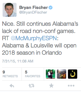 This attack on Alabama’s scheduling is not new. It often takes the form of an attack or disdain for Florida’s scheduling or the SEC’s in general. There is validity in the criticism. The SEC doesn’t play as many power five out of conference games as some other conferences do, but that’s not a function of conference affiliation; it’s a function of location.