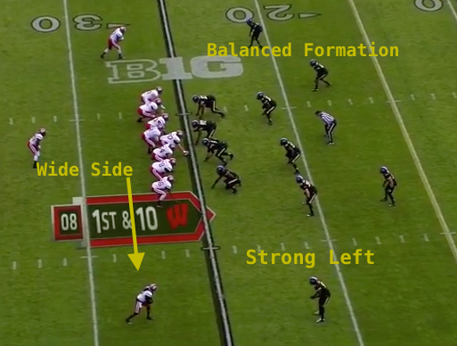 The strong side of an offensive formation is the side of the field, left or right, where the offense has more blockers available for a running play.