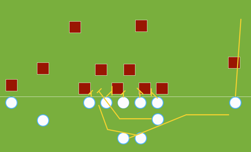 It was a beautiful play to watch unfold and is a nightmare for defensive coordinators. When it works well, like here, it usually goes for a touchdown. Expect to see this play being incorporated into more offenses that run a read option, which is most everyone.