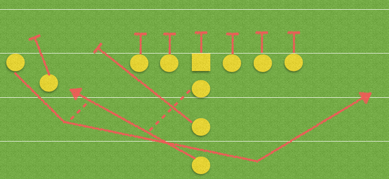 An offensive play in which the ball is run in one direction before being handed or pitched to another player running in the opposite direction.